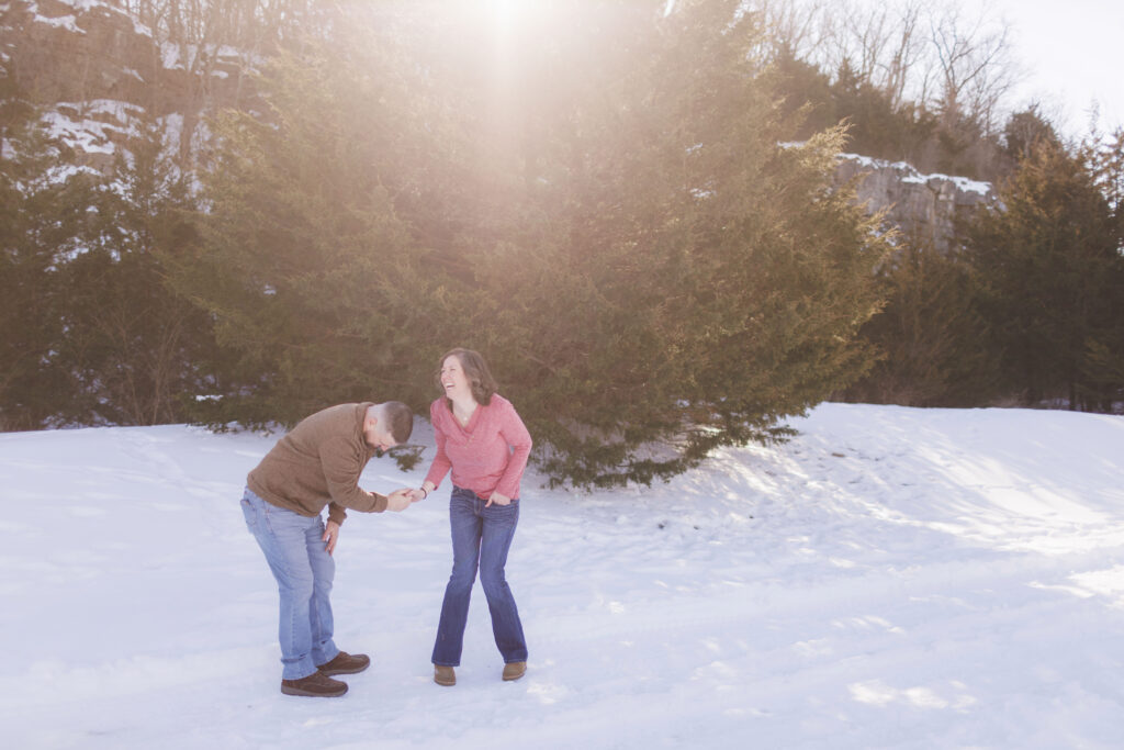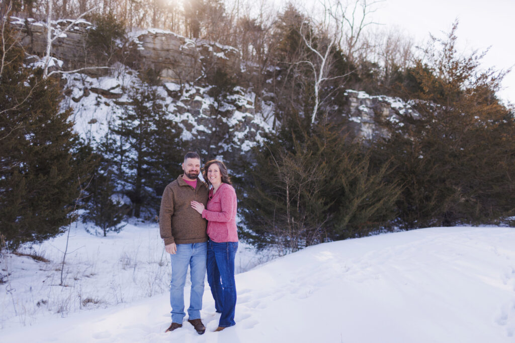 It was definitely one of those true Midwest winter days. The air was cold, the ground was frosty, and you could see your breath in the air—but Shaun and Stefanie handled it like pros. Between the chilly temperatures and the winter wind, they still managed to laugh, stay close, and completely embrace the moment together.