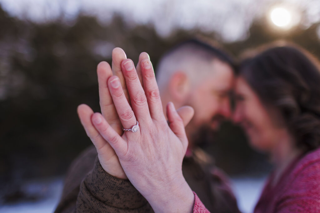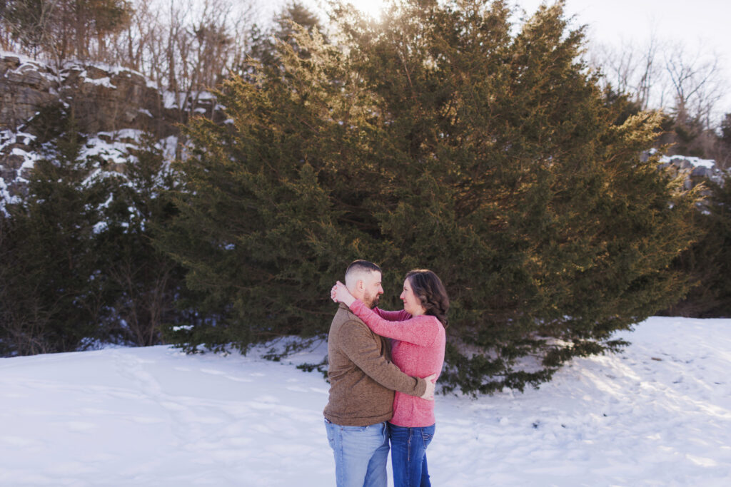 Even though it was cold, the winter scenery gave their session such a peaceful and cozy feel. The bare trees, soft winter light, and quiet trails made the perfect backdrop for celebrating this season of their lives.